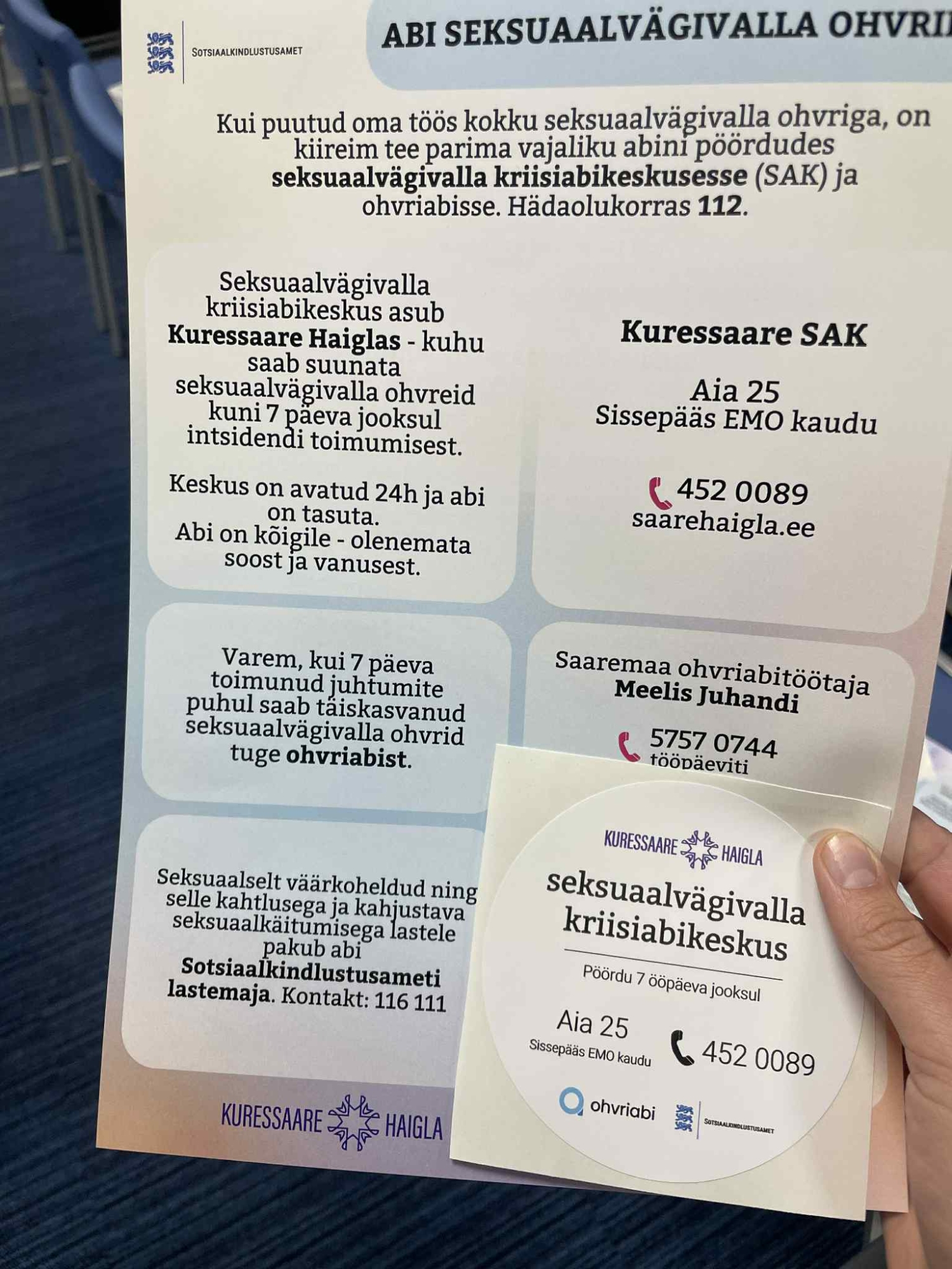 27. juuni on Saaremaa jaoks märgiline päev, sest Kuressaare haigla ruumides avati seksuaalvägivalla kriisiabikeskus, mis pakub ööpäevaringselt professionaalset abi ja tuge kõigile seksuaalvägivalla ohvritele. Sarnased keskused tegutsevad juba Tallinnas, Tartus, Pärnus ja Ida-Virumaal ning Kuressaare keskus on järjekorras viies omataoline Eestis.